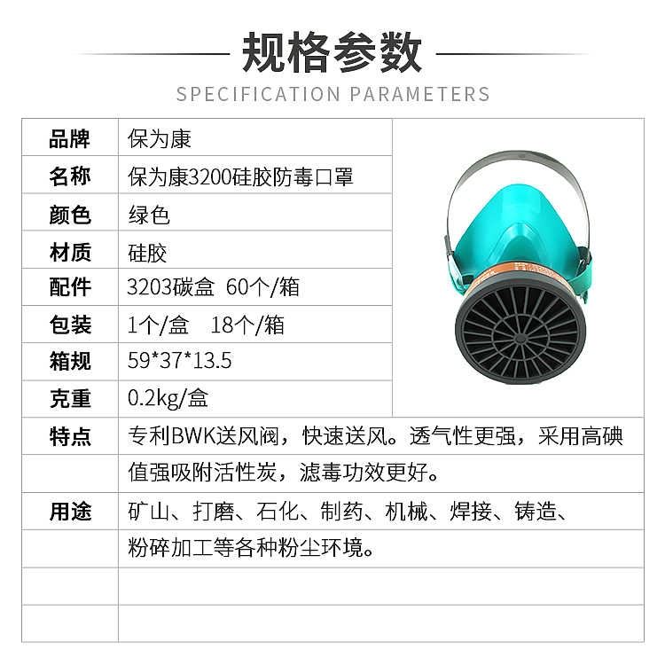 保为康口罩 硅胶 3200防毒 18个/件