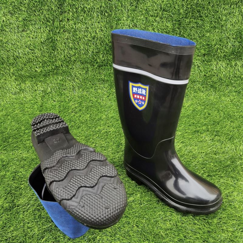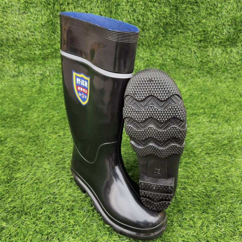 反光条717单色野战靴 三防雨鞋 全黑色底橡塑 15双/件