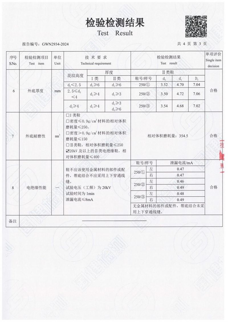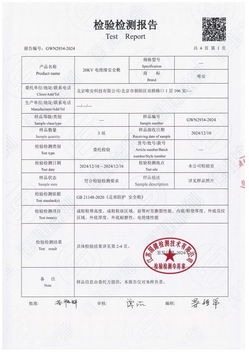 唯安20kv绝缘雨鞋报告