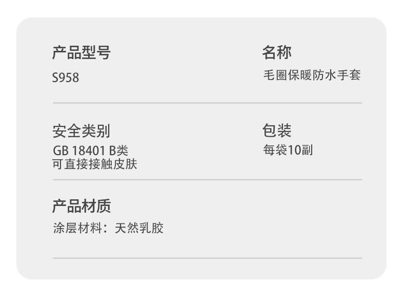 唯安 S958全胶防水保暖手套 10双/420