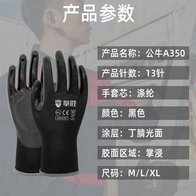 公牛A350 丁腈手套 拳胜牌手套
