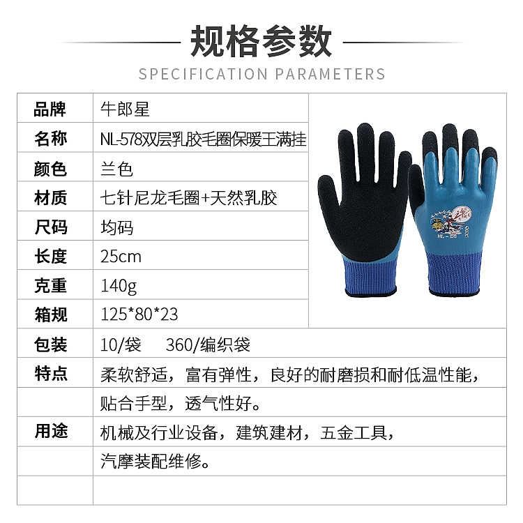 牛郎星手套 NL-578双层乳胶毛圈保暖王满挂