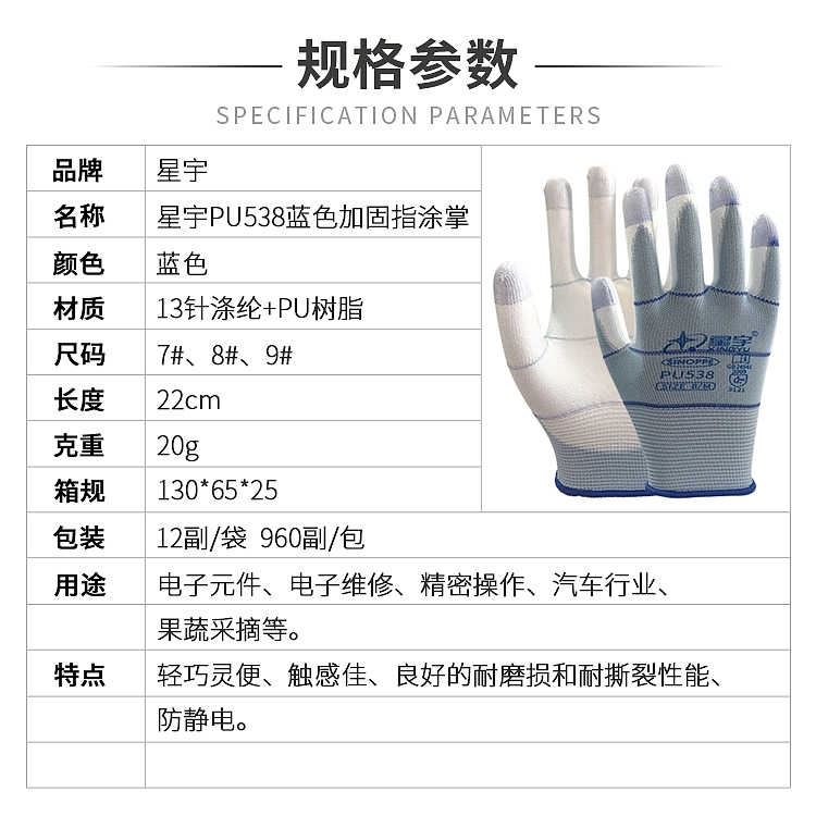 星宇手套 PU538蓝色加固指涂掌