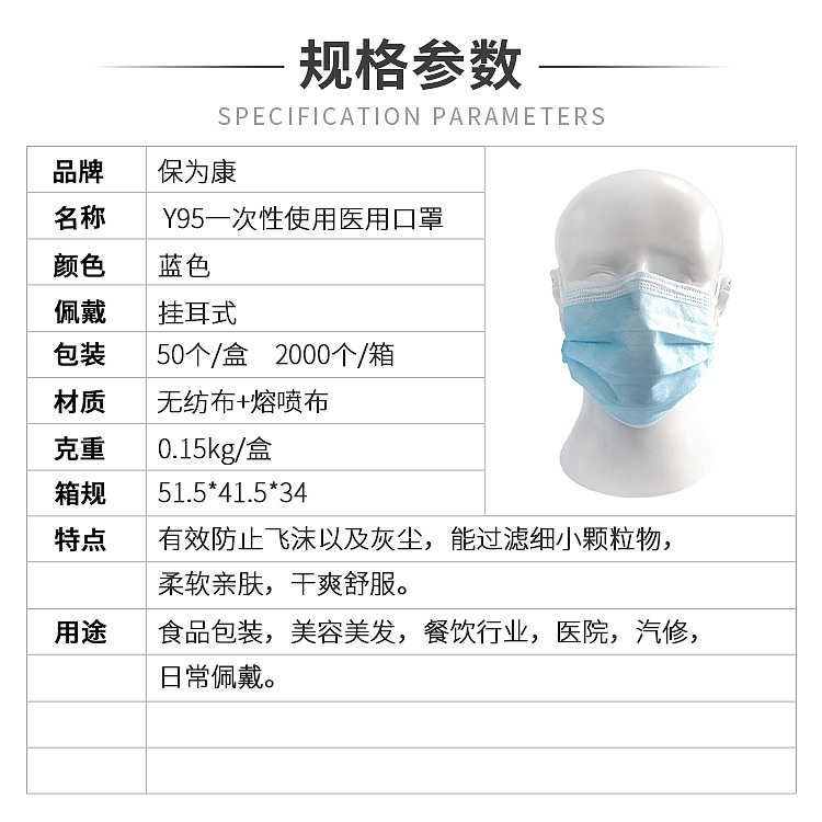 保为康口罩 医用 Y95一次性口罩 2000个/件